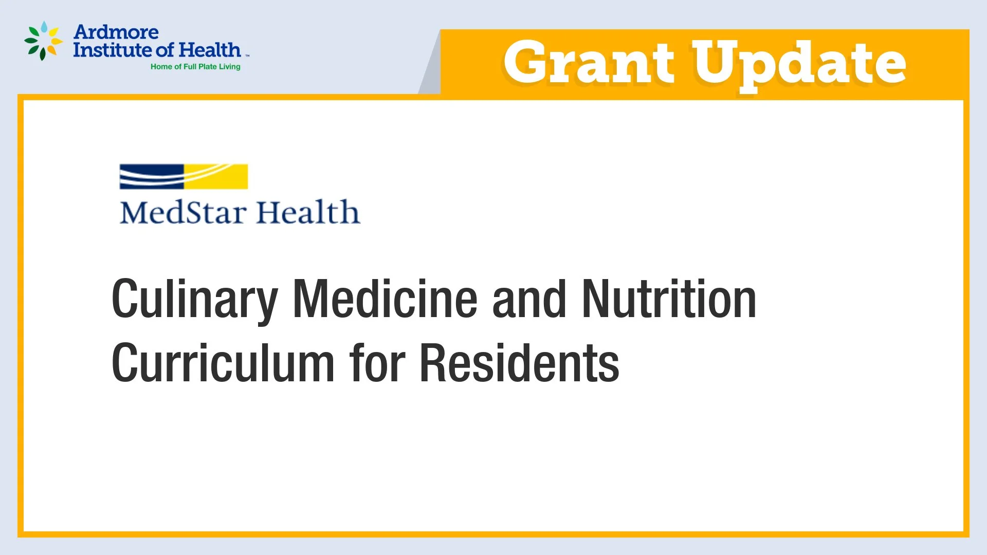 Ardmore Institute of Health (AIH) is delighted to support MedStar Health’s Culinary Medicine and Nutrition Learning Curriculum for Residents in Training, designed to equip residents to treat diet-related diseases and chronic conditions.